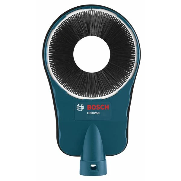 This dust collection attachment SDS-max® hammers by Bosh® is designed for drilling into concrete with core bits. It is optimized for drilling diameters from 1-1/2 In. to 5 In. but can accommodate up to 6 In. if the brush ring is removed. The attachment features two unique air chambers: one allows the drilling bit to pass through when drilling into the work surface. The second air chamber is designed to maintain suction to the wall during the drilling application. The dust port is designed for Bosch 1-3/8 In. vacuum nozzle but can be used with either 1-1/4 In. or 2 In. vacuum nozzles when used with the appropriate adapter. The system is universal and is designed to connect to a vacuum so that it can be used with any size hammer and can accommodate the full range of core bit diameters and drilling depth.