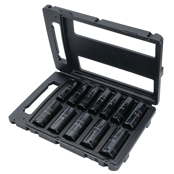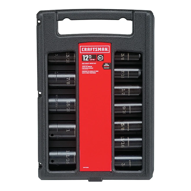 - Includes (12) 1/2-in Drive Deep Impact Sockets SAE (3/8-in, 7/16-in, 1/2-in, 9/16-in, 5/8-in, 11/16-in, 3/4-in, 13/16-in, 7/8-in, 15/16-in, 1-in, 1-1/16-in)