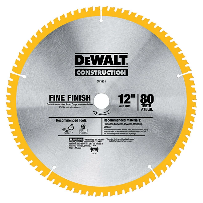 DeWalt Construction Mitre Circular Saw Blade – 12-in Dia – 80T – Carbide Teeth