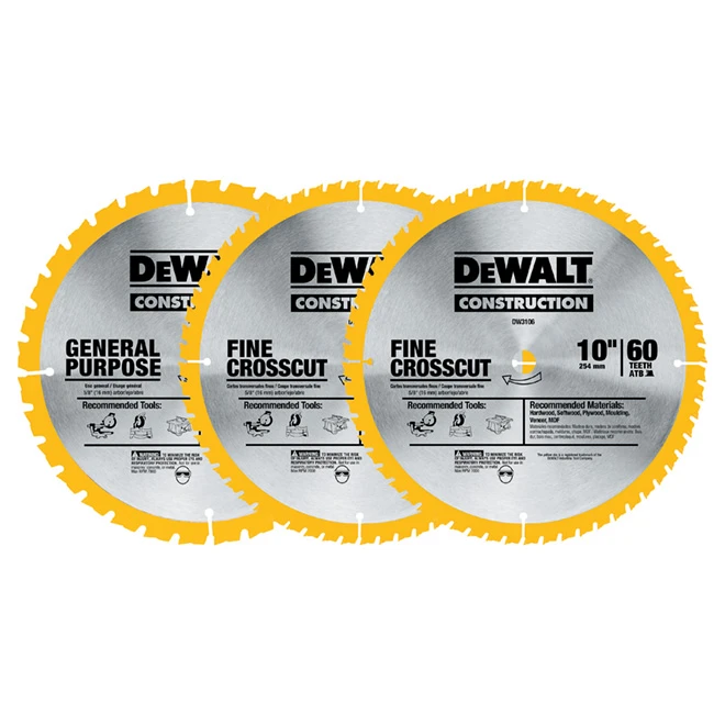 DeWalt Construction Saw Blade – 3-Piece Set – 10-in Dia – 32T And 60T – Tungsten Carbide Teeth