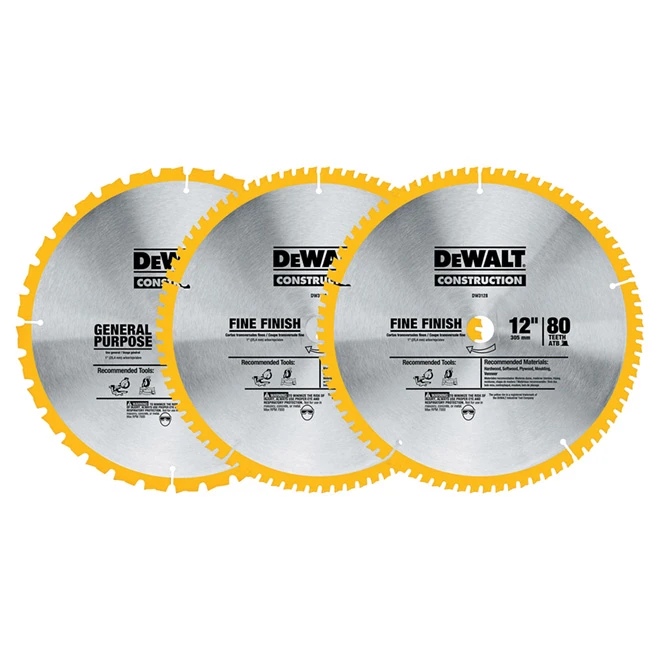 DeWalt Construction Saw Blade – 3-Piece Set – 12-in Dia – 32T And 80T – Tungsten Carbide Teeth
