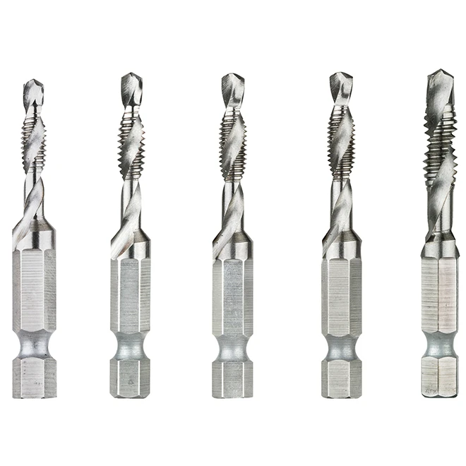 This Dewalt drill and tap set is perfect for drilling and tapping holes in one application. Made for deburring and countersinking in one step, the shanks are designed for impact drivers and drills material quickly. The set includes 1 bit of 8-32, 1 bit of 10-24, 1 bit of 12-24 and 1 bit of 4-20.