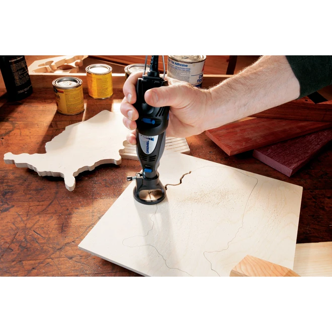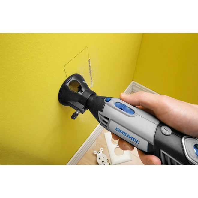 Maximize results and minimize time when completing projects with the dremel cutting guide. The rotary multi-tool cutting guide is ideal for cutting a wide range of materials including fiberglass, vinyl, plastic, drywall and laminate. Having an open window design, this rotary tool cutting guide gives clear visibility while working. Create depth settings up to 3/4 in quickly.