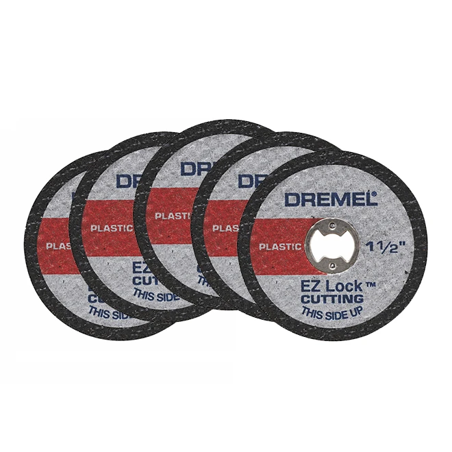 Invest in Dremel EZ lock cut-off wheels to enhance your plastic cutting projects. The rotary tool cut-off wheels possess a medium grit which allows for fast clean cuts. With its EZ Lock system, these cut-off wheels for plastic make accessory changes quickly. The labelled cutting on the wheels allows quick identification. The wheels have a diameter of 1 1/2 in.