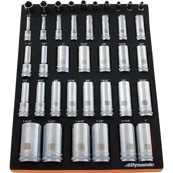 Dynamic Tools 40-Piece SAE Deep Socket Set With Foam Tool Organizer