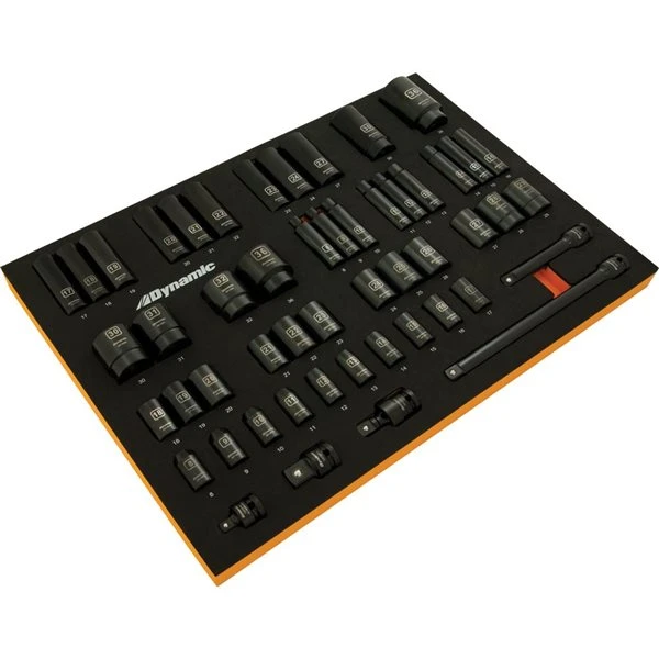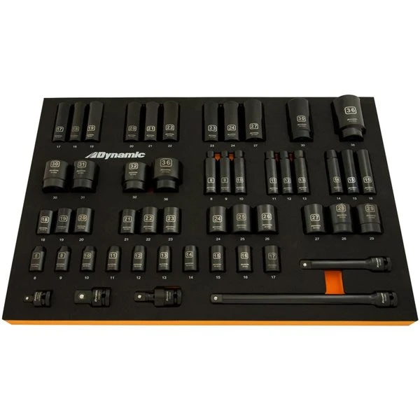 - Set Includes: 6 Point Standard Sockets: 8-36 mm, 6 Point Deep Sockets: 8-36 mm, 5 & 10 Extension, Adapters, U-Joint and Foam Tray Organizer: 21-3/4 (w) x 15 (d) x 1-1/4 (h)