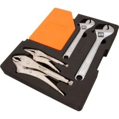 - Set Includes: 30 Piece hex key SAE and metric set, 8-in and 10-in adjustable wrenches, 10-in locking plier-curved jaw, 6-in locking plier-long nose, foam tray organizer