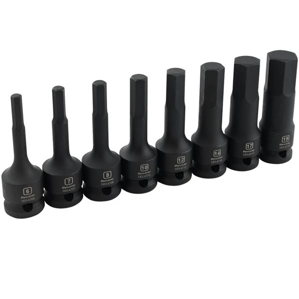 - Contains: 6 mm, 7 mm, 8 mm, 10 mm, 12 mm, 14 mm, 17 mm, 19 mm head bits