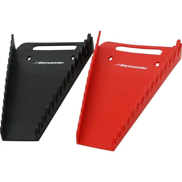 Securely holds wrenches and can be hung on wall or pegboard. Holds 1/4 to 1-1/8 and 6 mm to 28 mm wrenches. These holders are not compatible with stubby wrenches. Red and black colors allow for easy identification between SAE and Metric wrenches.