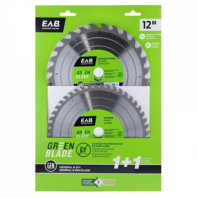 EXCHANGE-A-BLADE EAB Go Green Recyclable Framing Saw Blade Combo Pack – 12-in Dia – 28T And 60T- C2 ATB Carbide Teeth