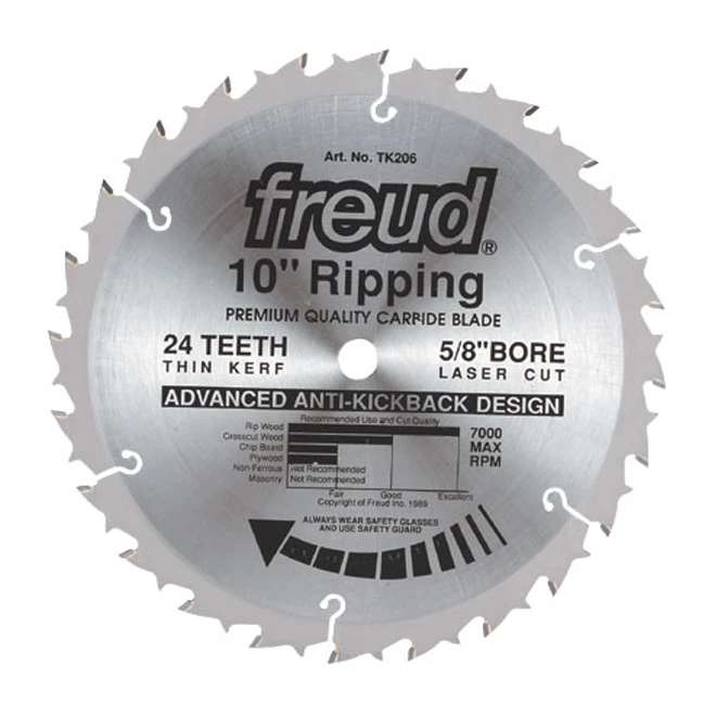 Freud Circular Saw Blade – Anti Kickback – 24 Teeth – 10-in Dia