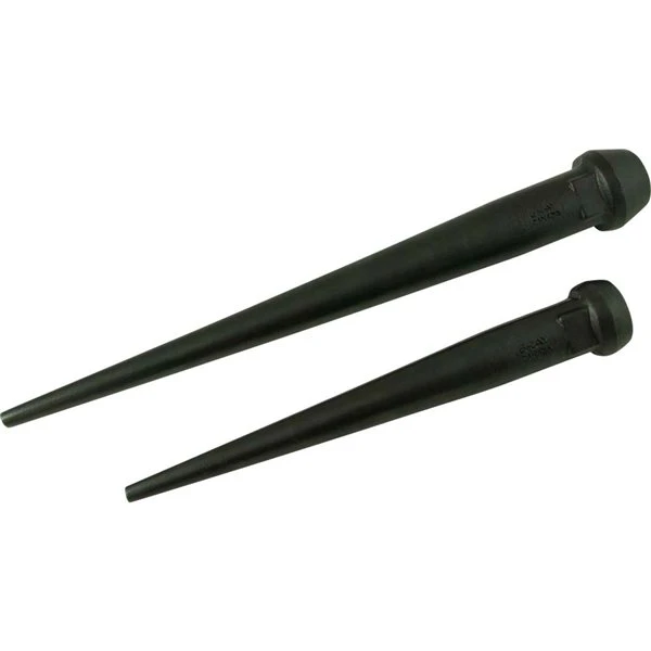 Forged, heat-treated broad head provides large striking surface. Broad head also reduces chance of pin slipping from the hand when aligning holes. Resistance to “mushrooming” permitting longer service life vs conventional aligning pins.