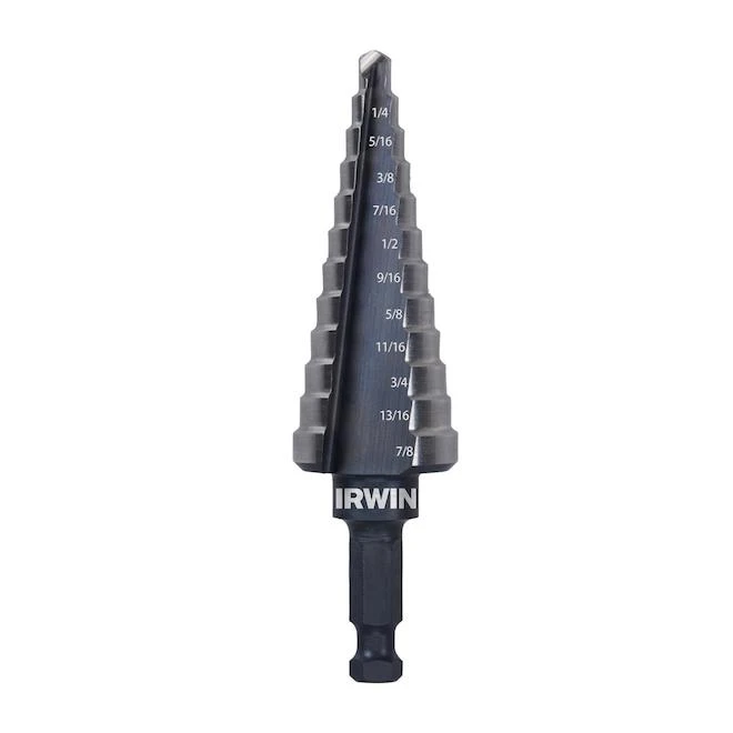 IRWIN Double-Flute Unibit® #4 Step Drill Bits are ideal for drilling holes into thin materials such as stainless steel or sheet metal and offer 2 times faster drilling versus a single-flute design. The dual-flute cutting edges helps to deliver clean holes and 12 defined steps allow for quick drilling of holes from 3/16-in to 7/8-in in diameter.