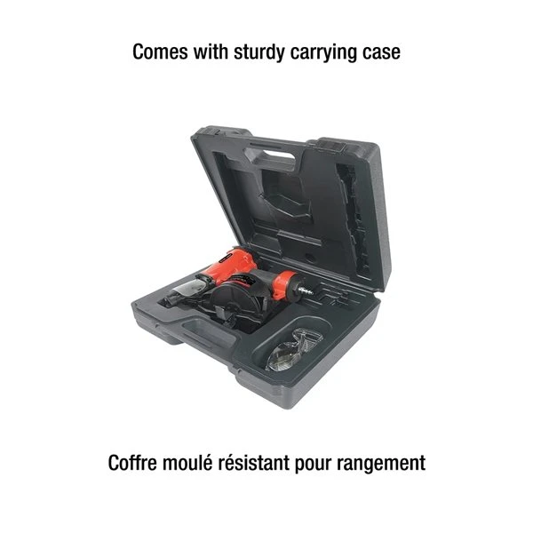 - Comes with 1/4-in air inlet, debris shield, safety glasses, oiler, hex. keys and sturdy carrying case