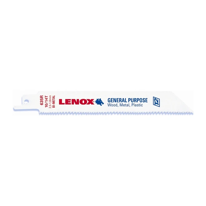 Use this Lenox reciprocating saw blade for different cutting applications. This versatile blade cuts metal, wood and plastics with ease. With optimum flex and rigidity, this bi-metal reciprocating saw blade provides reliable performance. Its Power Blast Technology feature gives it a long blade life. The tooth design of this general purpose saw blade optimizes chip ejection for efficient cuts.