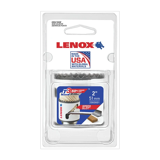 Tackle DIY projects with the Lenox steel hole saw. It has an optimized tooth that cuts through metals easily. A stairway design on the speed slot hole saw enables easy plug removal. The thick walls reduce tooth loss to offer lasting performance. This 2 in dia steel hole cutter has large and sharp teeth for fast cuts.