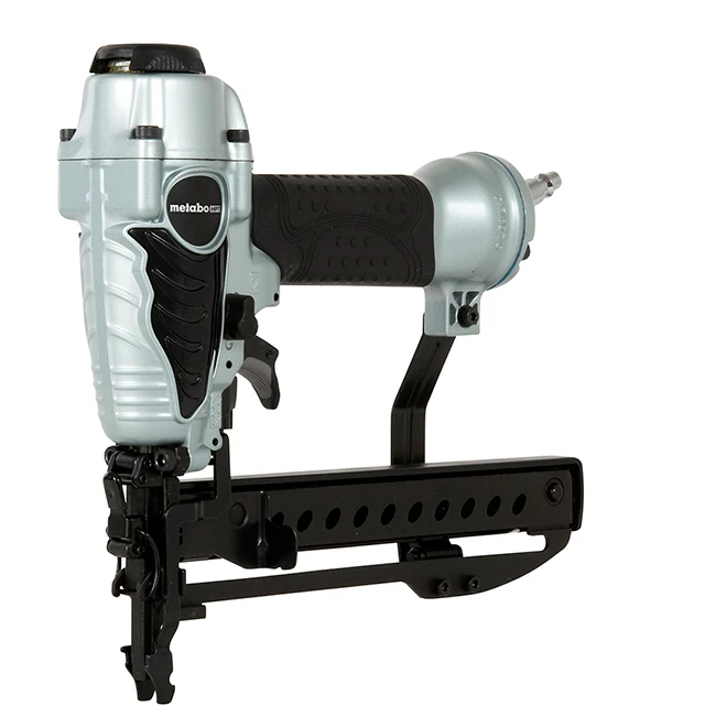 Use this Metabo HPT stapler for your carpentry projects. It is lightweight and equipped with an actuation switch that allows you to choose between sequential or bump fire modes. This 18-gauge stapler features a 360° adjustable exhaust that can be rotated away from the user for ease of use. Its no-mar tip protects your work surface from scarring or denting.