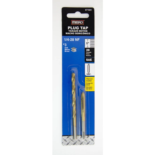 Be the first to review “MIBRO 1/4-In-28 3-Flute Alloy Steel Plug Tap With Drill Bit” Cancel reply