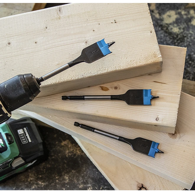 - 20X faster and 10X more holes per charge than conventional spade bits