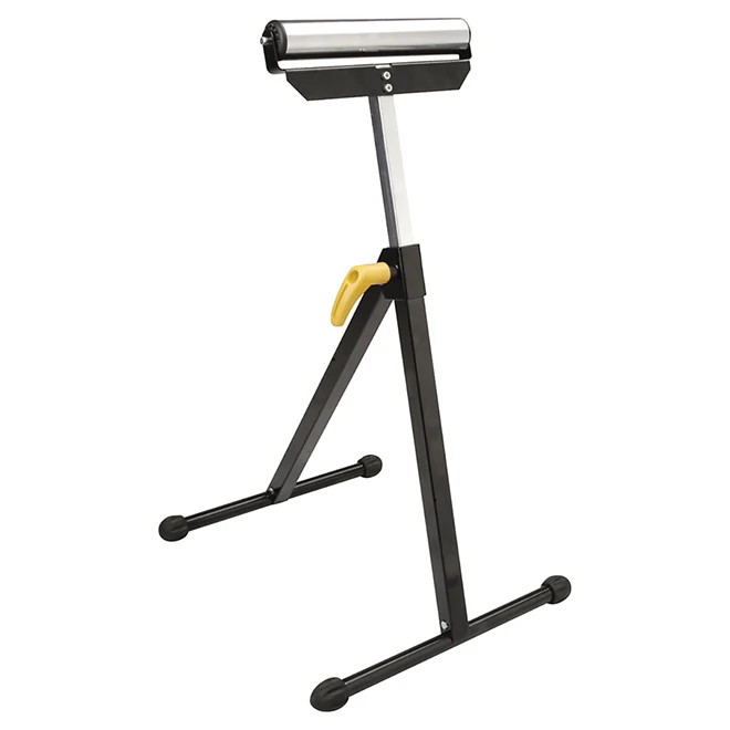 This powder-coated steel roller stand has a 11″ polished steel roller and slip-resistant rubber feet. The easy-grip handle lets you adjust height between 26.7″ and 42.6″. Folds flat for easy storage.