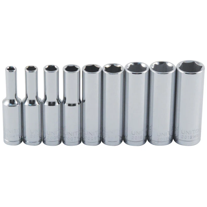 Unitool Deep Sockets – Chrome Finish – 1/4-in Drive – Assorted Sizes – Set Of 9